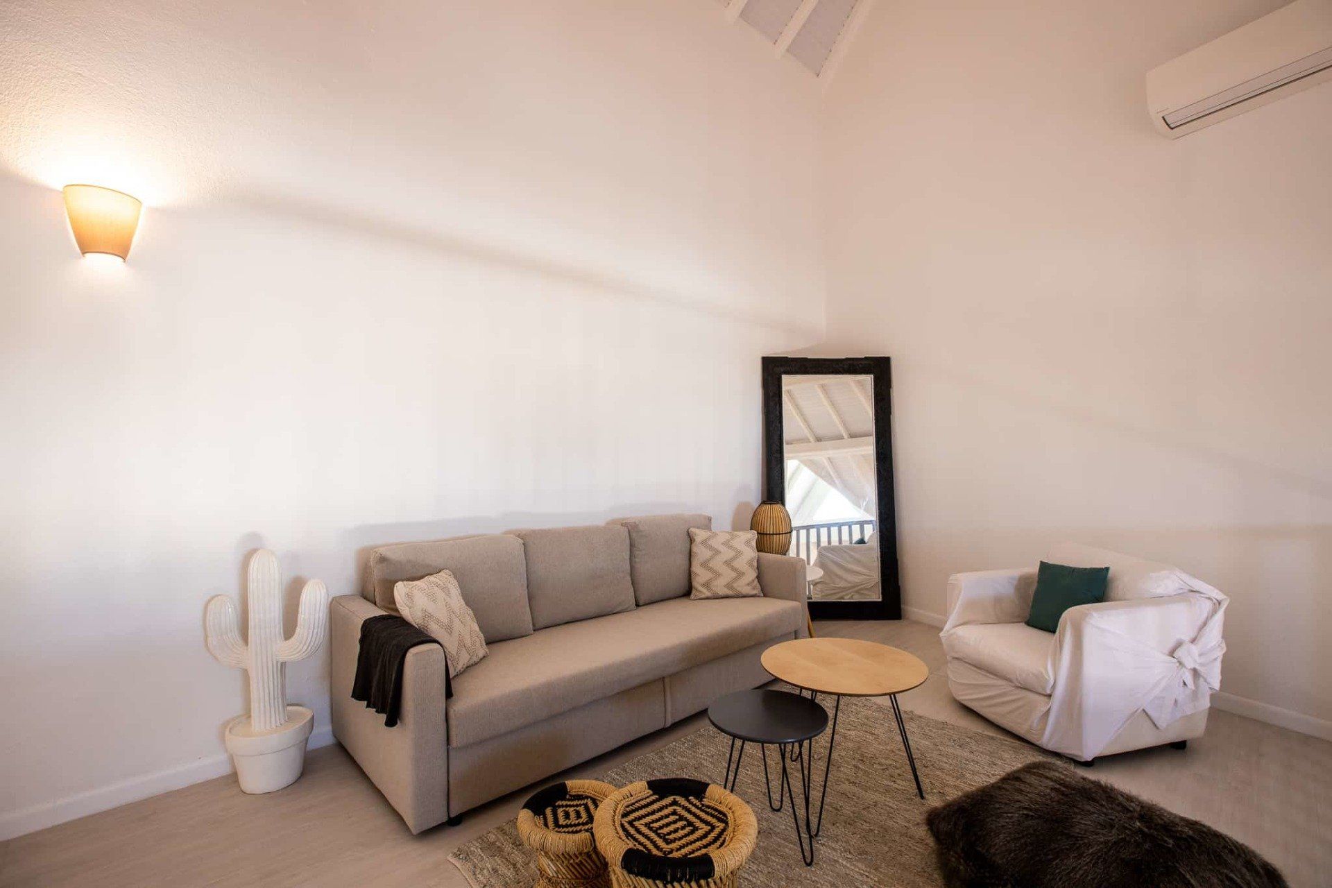 À l'étage se trouve un petit salon supplémentaire doté d'un canapé convertible afin d'offrir un couchage supplémentaire pour deux personnes. La chambre à coucher est privée avec une salle de bain belle et fonctionnelle.