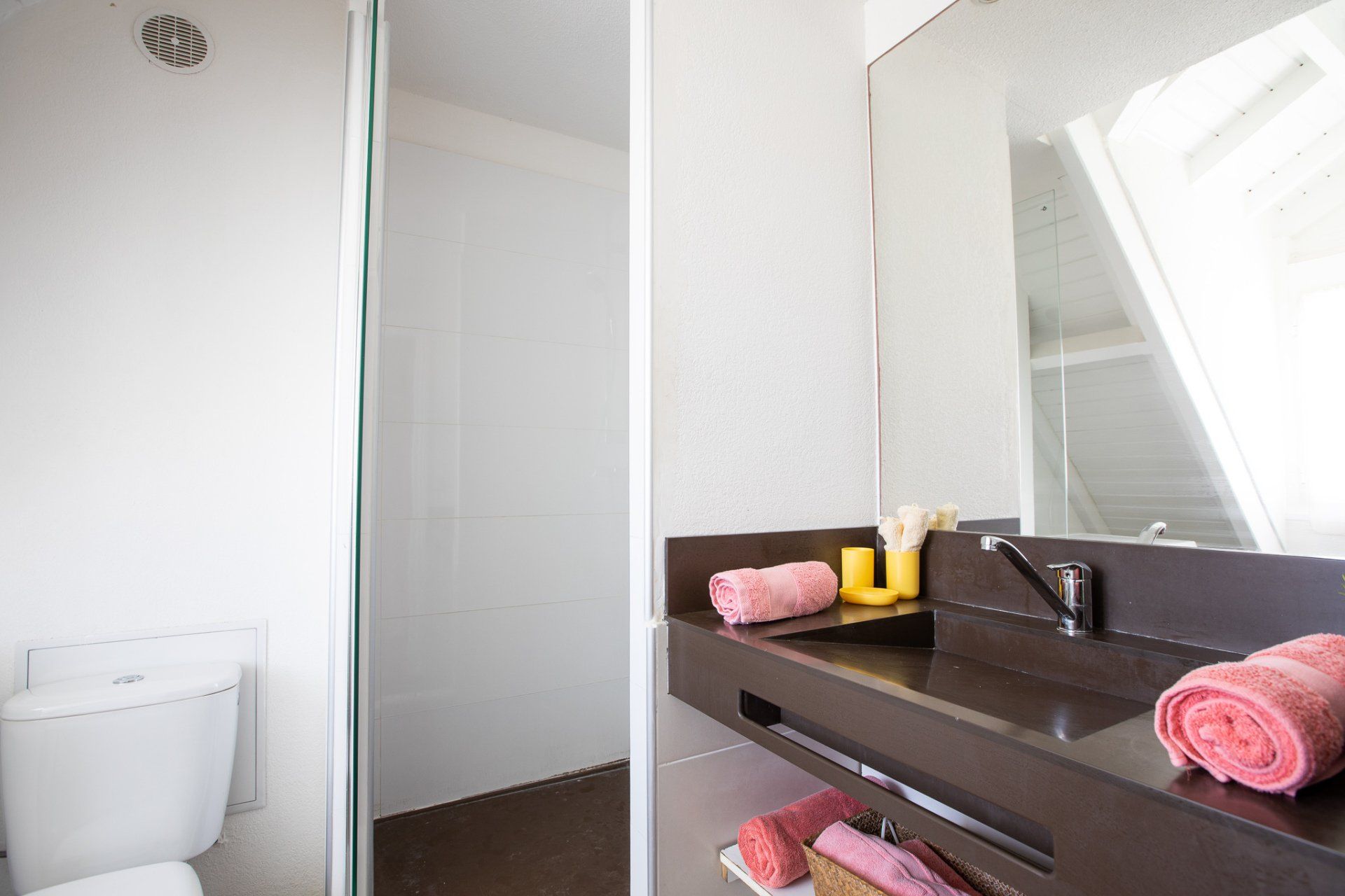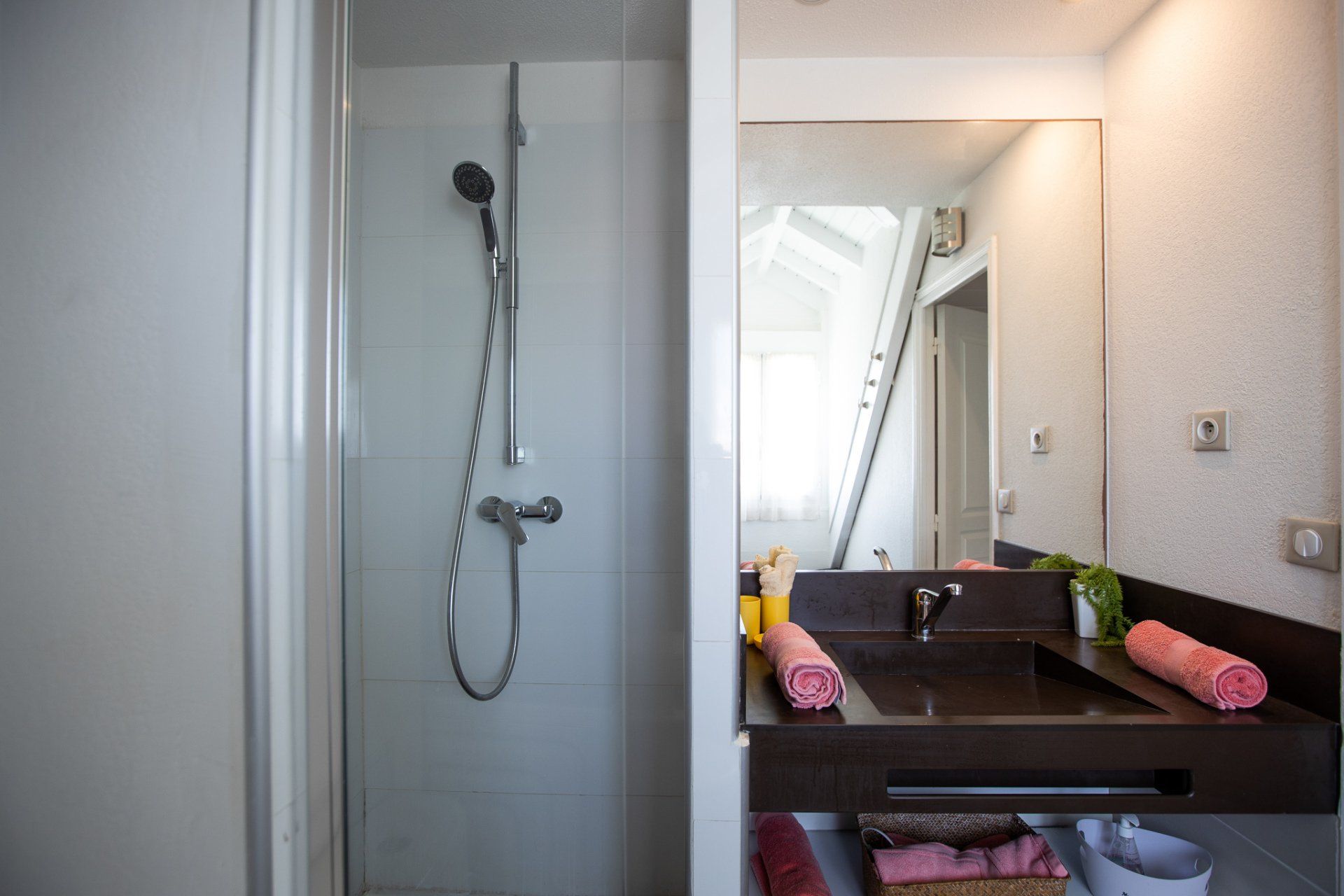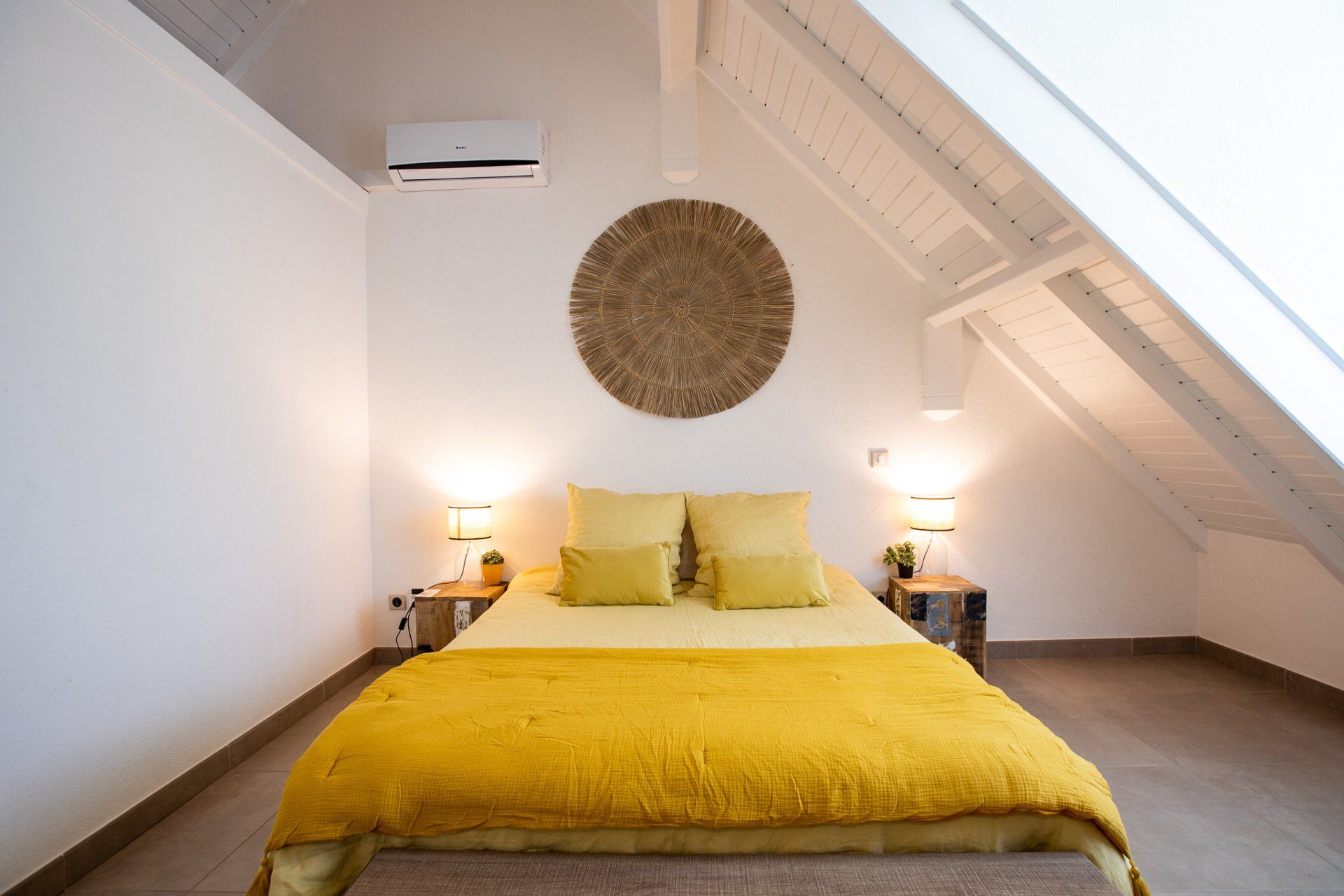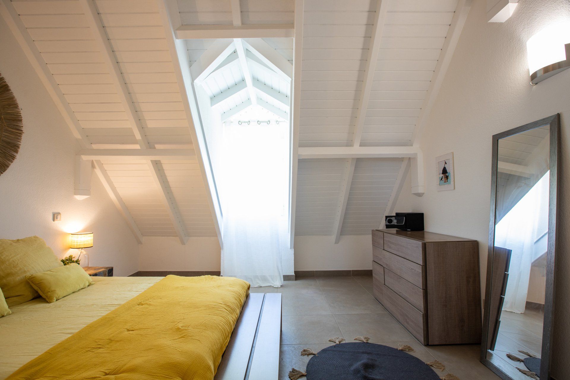 Upstairs, a large air-conditioned bedroom will welcome you with its adjoining bathroom.