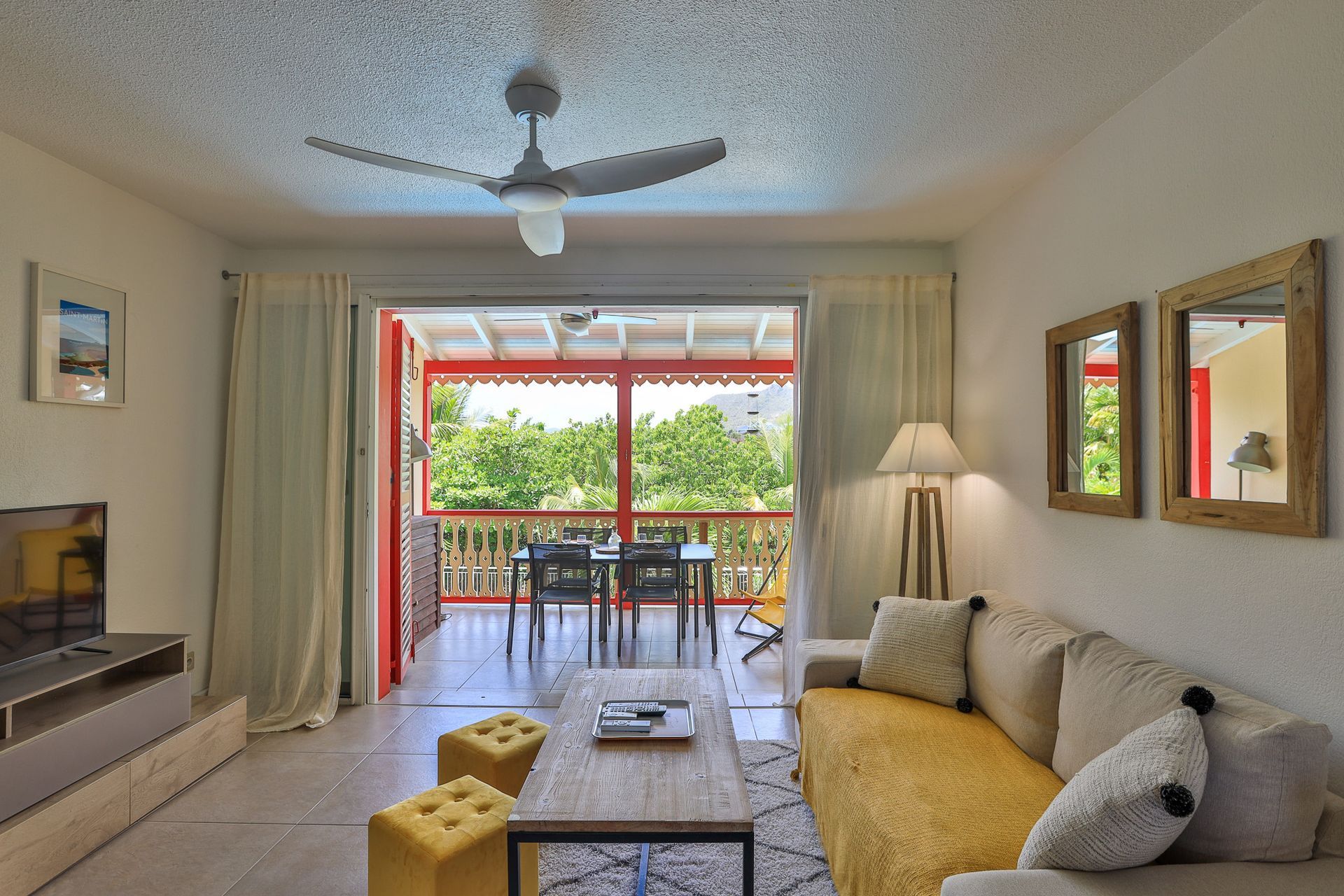 Composed of an entrance, with separate toilet, a living room with American kitchen (fully equipped), opening onto a beautiful terrace, itself overlooking the swimming pool and the tropical garden....